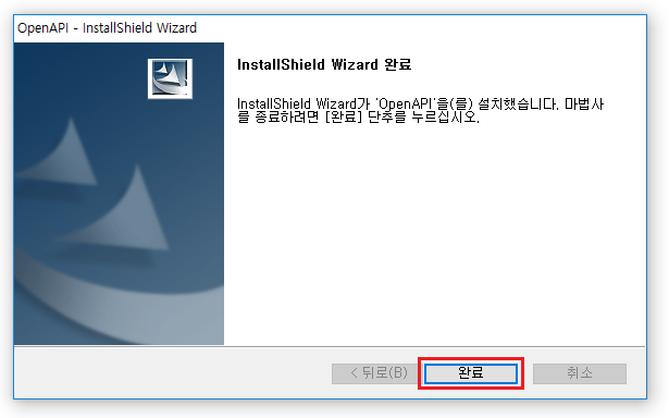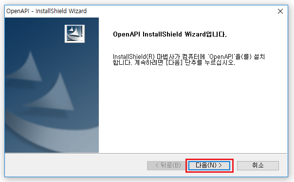 OpenAPISetup.exe 파일을 실행하면 노출되는 화면 입니다.
